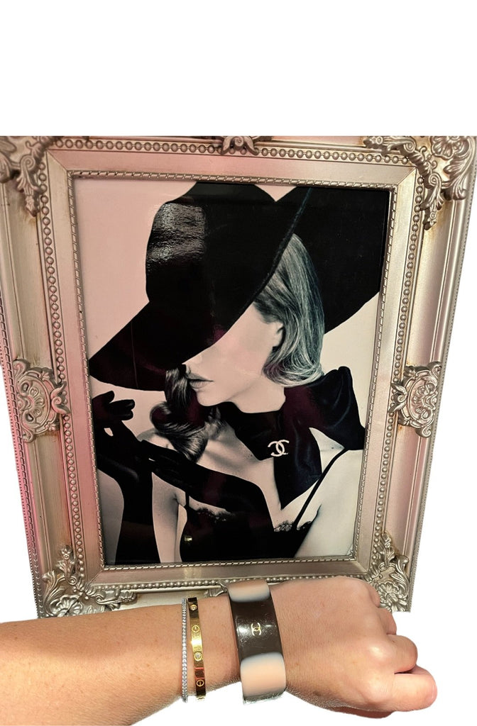 Chanel Cuff Dark Brown, Pink and Beige Plastic Bangle, from the 2001 Collection, Features 2 Gold Tone Iconic Coco CC Logos, a real stylish Chanel must have piece.